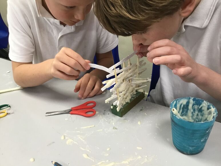 Today in Hawk Class, pupils learnt about everyday life as a Viking. They made wattle and daub walls which was what the Vikings used when building the longhouses that they lived in. Wattle and daub is a building method used in ancient times such as the Bronze and Iron Ages and the Anglo Saxon and Viking periods, where walls were made of a woven lattice of sticks (wattle) and plastered with a mixture of mud, clay, sand and animal dung (daub). We used skewers and straws for the 'wattle' and a flour and water paste for the 'daub'.